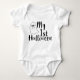 My 1st Halloween Cute Baby Ghost Bodysuit features the text "My 1st Halloween" in modern black hand lettered calligraphy script typography and accented with a cute baby boy or girl ghost. Perfect for baby's first Halloween party or celebration. Designed by ©Evco Holidays www.zazzle.com/store/evcoholidays