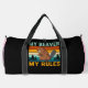 This fun black and pink duffle bag features a confident beaver standing in front of a vintage sunset, accompanied by the bold statement "MY BEAVER MY RULES." It's a humourous and assertive design for anyone who embraces their independence and playful side. Perfect for those with a unique sense of humour or a love for quirky animal graphics. Edit colour of the bag caps and body in the Design tool to your favored colours.