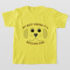The t-shirt feels and looks great quality, a good thick cotton. It will be a little big for my son, but that means he will be able to wear it and not out grow it too soon. The print was as described on the order when personalised. True size, shape and colour T-shirt- thanks.