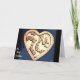This unusual and highly sentimental card features a picture of a ceramic heart with an abstract design made from broken pieces within it. It sits on a blue background with black sidebars and the text "my blue valentine". Inside the text reads "A broken heart, healed. Salvaged fragments pieced together create a beautiful new pattern within a heart that is whole (if slightly cracked). It is your love that binds it and gives it shape. You are the sculptor of my happiness,"