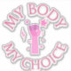 Show your support for women's rights with this pro-choice vinyl sticker design featuring a pink raised fist in centre with "my body my choice" text.