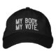 My body, My Vote. Pro choice black and white custom minimalist modern women vote, political election Embroidered Baseball Cap.
