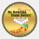 Competition leisure recreation bowling pins and ball with the word My bowling/drinking team rocks.