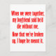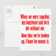 My boyfriend said he'd die without me postcard