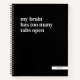 Personalised "My Brain Has Too Many Tabs Open" Spiral Notebook in black with white print.
