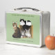 This is a standard metal lunchbox that appears to work just fine. We designed this box ourselves with an uploaded photo and custom text on the front and back. It looks absolutely beautiful except the front of the lunchbox is not centered like it shows in the photo. The print borders don't align with the inset flat part of the box where the preview photo online showed it perfectly centered in there. The back looks nice and centered though.