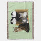 A quality printed throw has its advantages. This is a much finer weave throw than its loopier cousins, and though lighter, it is worth the investment for custom room accessorizing. The back is much prettier than the typical brown, and the fringe on the long sides very vivid, the selvage nicely done. Before photographing, I washed the throw in cold water, delicate, with a thicker woven throw the same size. On tumble dry low, this throw was dry in half the time as the other. This is a very practical quality if you use throws for furniture covers or to wrap up in frequently. The sleekness of the fabric makes it a great layer for accenting or protecting without the feeling of sitting on too much stuff. Perfect for napping or when you feel a light chill coming on. The color printing is beautiful and on this fabric, matched the design and color of my Photoshop image. This is an advantage for blending room fabrics and colors. The fringe on the short sides prints the colors from the design image and therefore varies from the side fringe. I streaked a white fractal line through the plaid pattern to give the illusion of weaving. This printed as crisp as an illusory thread, and put some white in the short side fringe, showing another advantage of print vs loomed- for artistic purposes, line lines, detail, and color integrity can be planned and preserved. My loomed throws have color limitations and more of a needlepoint texture. Print throws reproduce an exact image. The throw felt a little stiff straight out of the package, but this went away in the first delicate wash. Of course I searched the wash water for ink or bleeding and there was none.