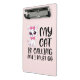 Answer the call of feline love with this 'My Cat Is Calling and I Must Go' clipboard! Featuring an elegant white cat adorned with a soft pink ribbon, this charming artwork is perfect for cat enthusiasts who know the undeniable pull of their beloved pets. A delightful gift for cat lovers, this design adds a touch of sophistication and humour to your day.