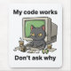 The perfect motif for all developers, programmers and computer scientists. Shows a grumpy-looking cat sitting in front of the screen and presenting a witty saying. An ideal statement for humourous and relaxed programmers.