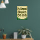A funny gardener saying reading My Compost Doesn't Stink in green messy letters, with lots of dirt around the edges and grass on the bottom, on a grungy faux parchment background.