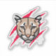Animated design of a brown Cougar with black features with claw marks in the background prepared to hunt.