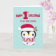 Send your Christmas wishes to your dear cousin with this card of an adorable little penguin wearing a Santa along with a bib and diapers for her first Christmas. © Ness Nordberg