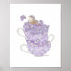 1. This artwork presents a faith-inspired depiction of the phrase "My Cup Runneth Over," featuring a trio of teacups brimming with lilac blossoms, complemented by a sparrow perched atop. Wonderful to have in a bathroom or kitchen.