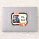 This photo template firefighter hero sticker has a place for your own photograph under the red and gold text that says "HERO". At the right is your custom text in black, and below the text is a red fire truck image. Everything is framed in black and gold. Make it say whatever you'd like!