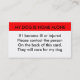 Keep this card in your wallet should you become ill or injured. The details on the back are the person/s who will care for your pet.