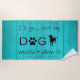 The My Dog Wouldn't Allow It Beach Towel features text that says "I'd go...but my dog wouldn't allow it." with a paw print and dog silhouette embellishment against a teal wooden background. Additional gift items available with this design as well.