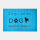 The My Dog Wouldn't Allow It Door Mat is perfect for those who prefer the comforts of home and the company of their dog. Door mat design features text that says "I'd go...but my dog wouldn't allow it." with a paw print and dog silhouette embellishment against a blue wooden background. Additional gift items available with this design as well.