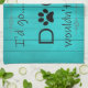 The perfect kitchen towel for those who prefer the company of dogs and the comfort of home. The My Dog Wouldn't Allow It Kitchen Towel features text that says "I'd go...but my dog wouldn't allow it." with a paw print and dog silhouette embellishment against a teal wooden background. Additional gift items available with this design as well.