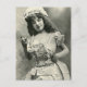 Silly vintage photograph with young woman wearing a dress and hat made from the morning newspaper