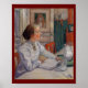 "My Eldest Daughter" by Swedish artist Carl Larsson. Painting depicts young woman sitting at the kitchen table with a book.