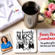 This is an item that I'd recommend for any special occasion or event. A memorable parting souvenir, after a spectacular time with family, friends or co-workers. Happily satisfied with the overall coaster: Bright Vibrant Colors; Accurate print & fonts as chosen; Sturdy material, which will last for a long time; Easy to clean with a wipe or two (don't intend on washing the bottom, which is cork)...