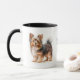 The feature on this mug for the Yorkshire Terrier dog fan is a beautiful watercolor image of an adorable Yorkie. The image is repeated twice with text at the centre that currently says "My favourite person is a Yorkie", but you may easily change it to anything else, or personalise it. Perfect for anyone who has lost their heart to a cute little Yorkie.