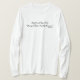 I love this shirt. I had written to the artist asking her if this picture was available on a shirt, and she wrote me back telling me where I could find the shirt. These shirts can be custom made to have a different saying. I loved this saying and went with it. The artist wrote me back later to tell me that she had seen my order go through. How's that for service? Pretty special. It's just as displayed. Perfect!