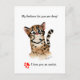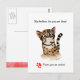This cute cartoon watercolor ocelot cat sits on this postcard with a funny love look. Text puns read top: "My feelines for you are deep ..." Bottom of postcard text: "... I love you an Ocelot!" and a heart paw print in red. On the back is a tiny ocelot and heart. Text on back reads: "...Not just an oce-little, but an ocelot!" Colours are brown tan black pink and red, with blue eyes. You can edit and change all aspects of this design. Hit the customise button to change the text font style or size. You can also choose a different background colour.