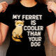 Show off your ferret love with a dash of humour in this adorable “My Ferret is Cooler Than Your Dog” design! Featuring a cute cartoon ferret and bold, playful lettering, this tee is perfect for proud ferret owners who want to make a statement. Great for casual wear, pet events, or gifting to exotic pet lovers!