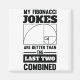 Funny design for math geek, mathematics teacher or anyone studying the Fibonacci numbers or sequence. Design says, My Fibonnaci jokes are better than the last two combined.