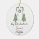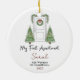 Celebrate the excitement of your very first apartment with this charming hand-drawn ornament featuring a festive front door, Christmas trees, and garlands in soft watercolor style. Personalise it with your name, address, and year to capture the joy of this new beginning. The minimalist design with elegant handwritten text makes it a perfect keepsake or thoughtful gift for anyone moving into their first home or apartment. A timeless reminder of independence, warmth, and holiday cheer that will hang beautifully on your Christmas tree for years to come.
