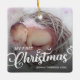 A modern baby christmas holiday ornament featuring a fully replaceable printed photo on both sides, a dusty overlay, the saying 'My First Christmas', the childs name and the year to create an unforgettable keepsake that you can cherish forever.