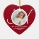 This stylish heart-shaped My First Christmas as Grandpa Photo Ornament features the word "JOY" on a red background.