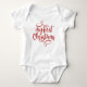 Cute baby's first Christmas bodysuit with red glitter script typography.