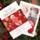 Our red first Christmas baby photo collage holiday card is the perfect holiday greeting to family and friends. The design features red and black typography featuring a candy cane style lettering. Personalise the card with you baby's photos, and your holiday message by using the "Personalise" button.