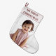 "Mark this special milestone with a beautifully personalized “My First Christmas” baby photo stocking. Featuring your child’s photo and name, it’s a sweet way to capture the magic of their earliest holiday memories. A cherished keepsake to hang year after year. Soft, sweet, and full of holiday charm—this stocking turns baby’s first Christmas into a tradition you’ll treasure forever."