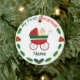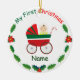 A baby in the baby stroller in red and green, and decorations with “My First Christmas.” Cute and unique Christmas gift for babies to remember your baby's first Christmas.