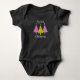 Three cute and festive trees in pink, purple, and green can be seen on this adorable bodysuit with the phrase "my first Christmas".