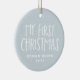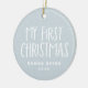 Celebrate and commemorate baby's first Christmas with this sweet and simple photo ornament. Featuring "my first Christmas" in playful type on a snowy background, this cute ornament also has room for custom text for the name and year and also a photo on the reverse side. This first Christmas ornament makes a great gift for new parents or can be bought for your own family!