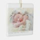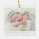 This is a lovely ornament, and great that you personalise the back with details of birthday, weight, etc.. My only tiny disappointment is the "My First" doesn't stand out very well on the background. More than happy with the printing of the photo and the writing on the back.