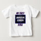 Create a unique keepsake for your youngest generation with this "My First Family Reunion" infant shirt featuring marbled navy blue and black colours. The dark blue and black marbled abstract adds a colourful backdrop for your family's name and year. Quickly and easily personalise to create a one of a kind memento for your next large family gathering or vacation.