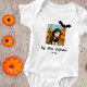 My First Halloween Baby's Photo Baby Bodysuit. A custom baby's photo and text in trendy script. Personalise it with your baby's photo and year. A lovely Halloween holiday keepsake.
