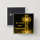 Brown and golden colours "My First Holy Communion" button pins original art unique design with a special cross with star burst all reflected in the peaceful water ripples below. Remember this special holy day with buttons for your family and friends. See pink version, blue version and other First Communion stickers, magnets, postage stamps, shirts at MVDesigns store.