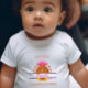 Let your baby girl celebrate her first Thanksgiving in style with this charming design. "My First Thanksgiving" add a name and a year custom bodysuit/shirt was crafted especially for little girls. This adorable design features a cute baby turkey in a pink crown, holding a name frame, for you to fill it, and beautiful butterflies. Everything is in warm autumn colours. Add a year as well and make this design a memory token for future years. It sure to bring smiles and joy to everyone around.