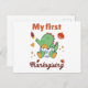 Cute and funny design featuring a dinosaur baby and the quote "My first Thanksgiving". Great idea for babies celebrating their first Thanksgiving.