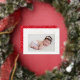 Modern Valentine's day card featuring "My First Valentine's Day!" in a trendy gold foil script with hand-drawn hearts along the sides of the card on a white background. Your horizontal photo is displayed near the middle of the design. Personalise the Valentine's Day photo card by adding your name and the year in gold foil lettering. The foil Valentine's day card reverses to display a red and white heart pattern.
