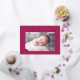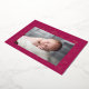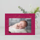 Modern Valentine's day card featuring "My First Valentine's Day!" in a trendy gold foil script with hand-drawn hearts along the sides of the card on a fuchsia background. Your horizontal photo is displayed near the middle of the design. Personalise the Valentine's Day photo card by adding your name and the year in gold foil lettering. The foil Valentine's day card reverses to display a fuchsia and white heart pattern.