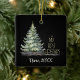Celebrate your baby´s first Holiday Season with this sophisticated black Christmas ornament, perfect for marking special memories. On one side, a beautifully designed watercolor Christmas tree is accompanied by the words My First Christmas, with space to personalise the name and date, making it a heartfelt keepsake. The reverse side showcases a serene cluster of pine trees, paired with the timeless phrase Silent Night, Holy Night, evoking the magic and tranquillity of the season.