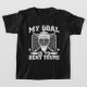 The t-shirt feels and looks great quality, a good thick cotton. It will be a little big for my son, but that means he will be able to wear it and not out grow it too soon. The print was as described on the order when personalised. True size, shape and colour T-shirt- thanks.