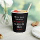 Celebrate your academic achievement with this stylish graduation paper cup featuring "My Grad Era" and "Class of 2026" prominently displayed. This design is perfect for any graduate embarking on their next chapter. The bold typography in white and red stands out against a classic black background, accented by three small red stars, creating a modern and festive look. Make your graduation party memorable with these eye-catching cups that guests will love.
